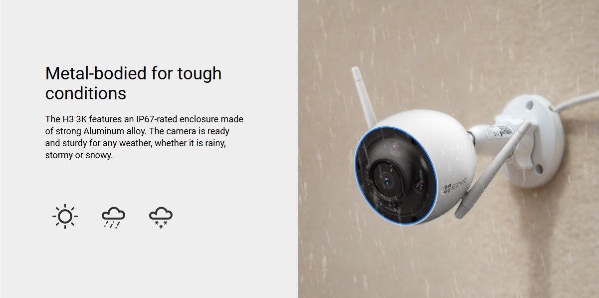 The EZVIZ H3 3K 5MP is a strong outdoor WiFi camera made for home security. It records in very clear quality, detects people and cars smartly, and even starts a call if someone waves. At night it shows color or switches to infrared. It can flash lights and sound an alarm when needed. You can talk through it or leave voice alerts. Built tough to handle rain and sun. Stores video on card or cloud. Perfect for entrances, yards, and parking areas.